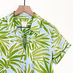 100% Linen Coastal Eclectic Mini Shirt Sun Dress Tropical Print Summer Sundress