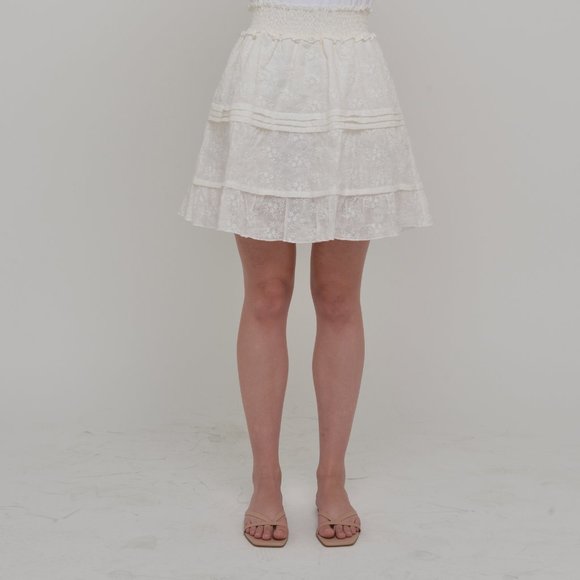 100% Linen Floral Embroidery Tiered Skirt - All Natural and Sustainable