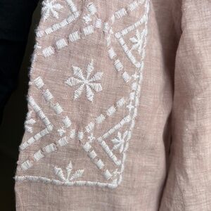 100% Linen Joie Light Pink Embroidered Long Sleeve Top