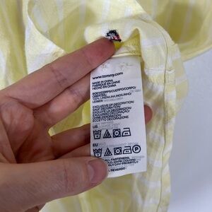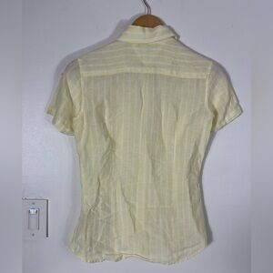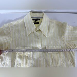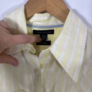 100% Linen Tommy Hilfiger Yellow White Striped Button Up Short Sleeve Shirt Sz 4