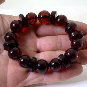 100% NATURAL Dark Cherry Amber Bracelet, 13-14 mm Round Beads with Disks