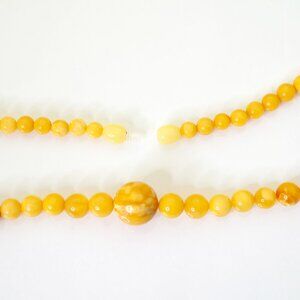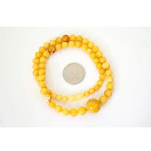 Amber Beads are strung on nylon cord and finished with a screw clasp.