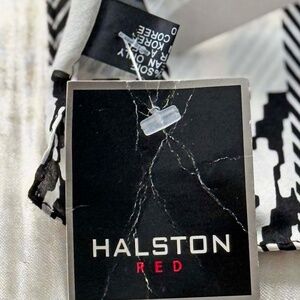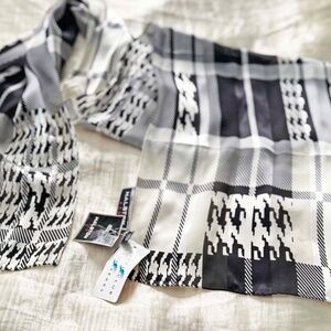 100% PURE SILK SCARF, by HALSTON RED, in BLACK/WHITE, 62 x 13 INCHES, A RARE FIND, TAGS ON, NO DAMAGE NEVER USED