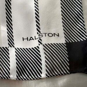 100% PURE SILK SCARF, by HALSTON RED, in BLACK/WHITE, 62 x 13 INCHES, A RARE FIN