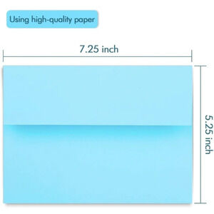 100PCS STANDARD ECO-FRIENDLY BABY BLUE 5X7 ENVELOPES. The envelopes are exactly measured 5 1/4 x 7 1/4 inches.Perfect for 5x7 cards/photos. Events: weddings, birthdays, baby showers, graduations,holiday, party invitation,letters, hand made cards, business and more