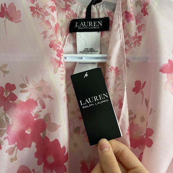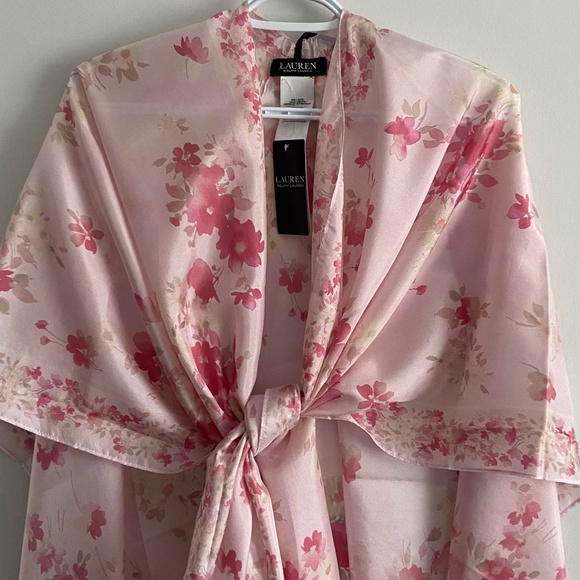 100% SILK LAUREN RALPH LAUREN WRAP PINK SCARF SWIM COVER FLORAL FEMININE TRAVEL