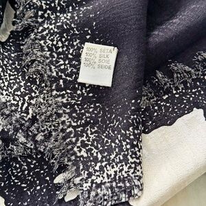 100% SILK SCARF, CHARLES JOURDAN PARIS, BLACK/WHITE, 54 x 52 INCHES, SMALL FRINGE, NO DAMAGE NEVER USED