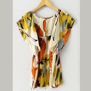 100% Silk Anthropologie Flutter Blouse Size 6 (but fits much larger)
