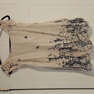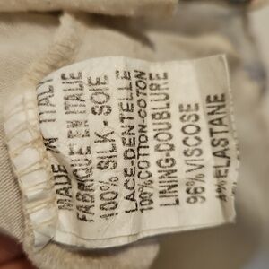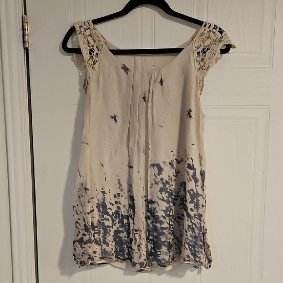 100% Silk Boho Peasant Blouse Womens Size Large off white crochet detail elegant