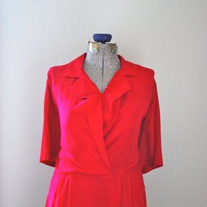 100% Silk Cherry Red Collared Dress