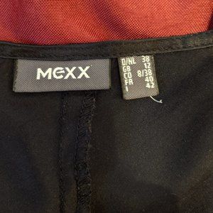100% Silk Mexx camisole/tank top. High quality fabric with beaded embroidery. Size 8 or 38 with side zipper and hook and loop closure. Black with silvery black decoration.