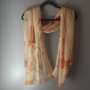 100% Silk Oblong Scarf Floral Yellow Gold Cream