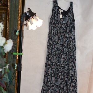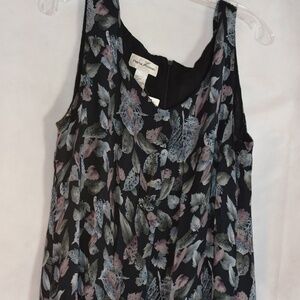 Another beautiful 100% Silk Dress. This one has a shift Dress no sleeves, long, Lined, zipper back. The jacket is a light matching 100% silk button front with frill. SZ L by Rena Rowan