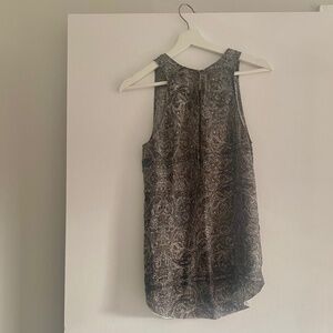 Off-white and gray silk top by Wilfred. Paisley-ish optic. Fun, flowy, boho - great for a night out.