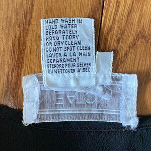 Vintage by Eaton from 1990s. 100% silk. Tank top blouse. Faded black colour. Soft, lightweight silk material. Short side slits. Classic, minimalist style, silk.