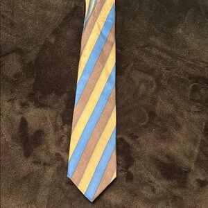 This tie features a sophisticated blend of blue and brown stripes, ideal for elevating professional attire. Crafted from 100% silk, it offers a subtle sheen that enhances its refined appearance.