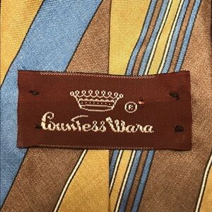 100% Silk Vintage Countess Wara Blue & Brown Striped Tie