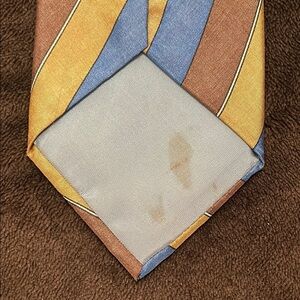 The bold diagonal stripes add a stylish touch to any outfit. Small stain on the underside of the tie, not visible when wearing and reflected in price.