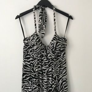 100% Silk Zebra Print A-Line Evening Dress