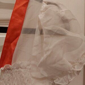 Never worn but so beautiful. Designed in Italy. 100% Silk with embroidered hem. Unique Find. Its very small for a large, more like a medium. Transparent.