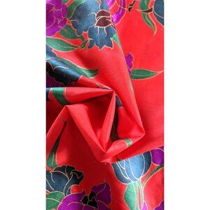 100% Thai Silk Square Scarf Red Tulips Floral Handvowen Handrolled 36*36"