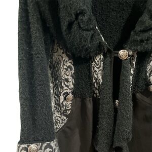 Prepare to turn heads with this one-of-a-kind Button-Up Shawl Sweater! Purchased at Marie Claire Boutiques, this small-sized sweater is a total showstopper—trust me, people will stop you and ask where you got it!
