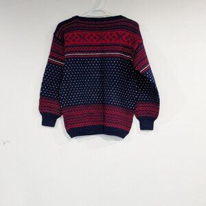100% Wool Fairisle Boatneck Sweater Navy Blue Red White Size Small