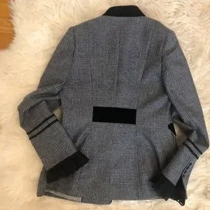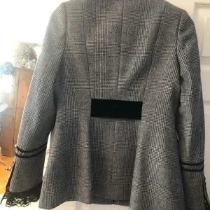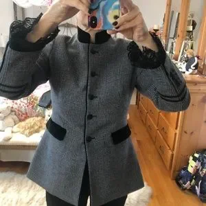 Long jacket decorated with velvet and lace at the sleeves. Adjusted to the waist. Made in spain.pit to pit 18 inches, lenght 27 inches