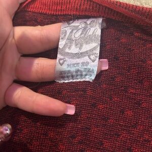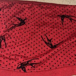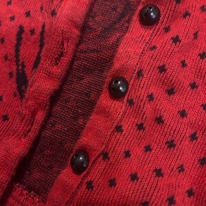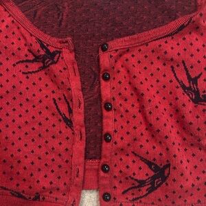 100% cotton Red Cropped Vintage Cardigan with Black Bird and Dot Print