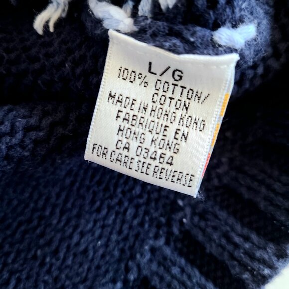 Oversized, blue and white cropped cotton hand knitted cardigan with buttons. Good preowned condition.