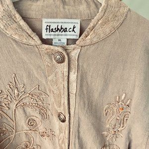 Camel jacket with embroidery trim