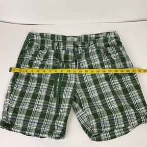 100% cotton plaid Green white Bermuda hiking shorts size 18