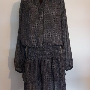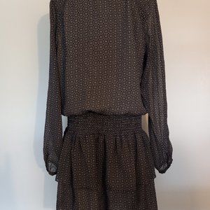 Purchased 7 years ago, new and never worn, this is a lined, 100% pure silk dress in the bohemian style. Can wear as a tunic over leggings or as a above the knee dress.