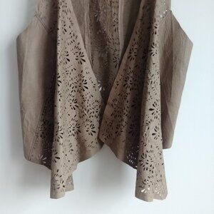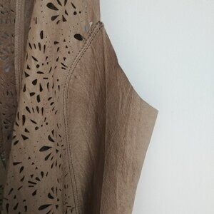 100% real leather taupe tan brown open front vest Medium