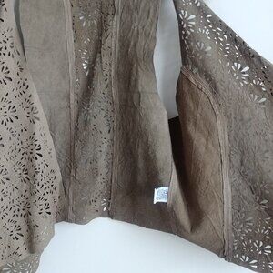 Very good used condition. This is a soft, pliable, lightweight vest with a laser cut pattern on some panels. Note a small spot on the back as seen in photo 7. Please see photos for measurements.