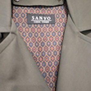 100% wool mens trenchcoat 40R deep olive Sanyo by Carol Cohen