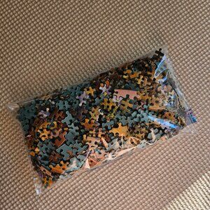 This puzzle is in a good condition and it's not missing any pieces. However, three or four pieces broke in half probably when someone was trying to fit them in places they wouldn't fit in. This simply means that you've got more puzzle pieces to work with!