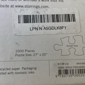 All 1000 pc puzzles are $15 each or 2/$25! Please note the box photo is covered by a white sticker, but the back indicates the full idea.