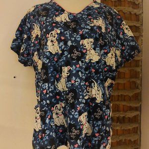 101 Dalmations Disney Spots of Fun Scrub Top Scrubs Nurse Caregiver Size XL XXL