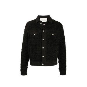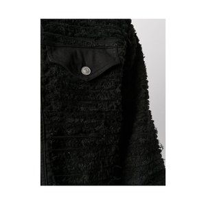 Black cotton blend fitted combined denim jacket from 1017 ALYX 9SM featuring a pointed collar, a front button fastening, long sleeves, button cuffs, front pockets, a straight hem and no lining.