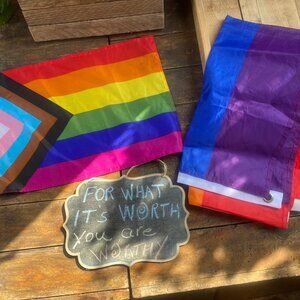 Pride House Flag- with metal gromments. Excellent condition. Wrinkled from storage never flown.