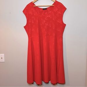 Time Square Coral Sleeveless Fit and Flare Dress with Raised Rose Design