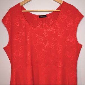 #104 Time Square Coral Sleeveless Fit and Flare Dress with Raised Rose Design