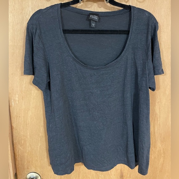 #105- EILEEN FISHER -Linen Jersey scoop Neck Tee