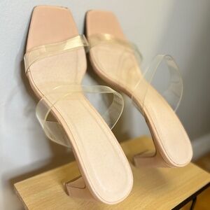 $10⚡️Chinese Laundry Clear Illusion Strap Nude Slip-on Heel Sandals
