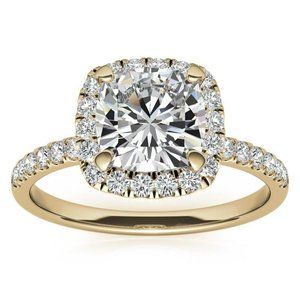 1.0Ct-6.0mm Cushion Moissanite & Lab Diamond Ring