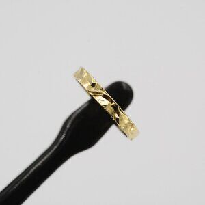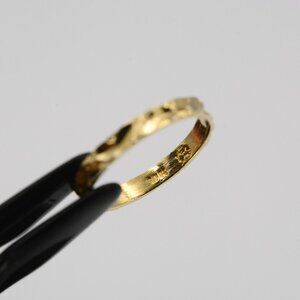 Baby rings are as adorable as the babies they’re meant for! This baby ring is a band style with diamond cut accents. Made of 10K Yellow Gold. Stamped “10K” with flower or clover beside on the inner band. This ring is in a half size (SZ US 0.5). Perfect first piece of jewelry!