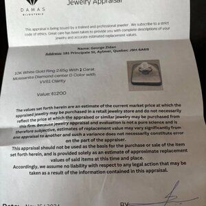10K Gold Ring with 2 Carat Moissanite Diamond Center D Color with VVS1 Clarity