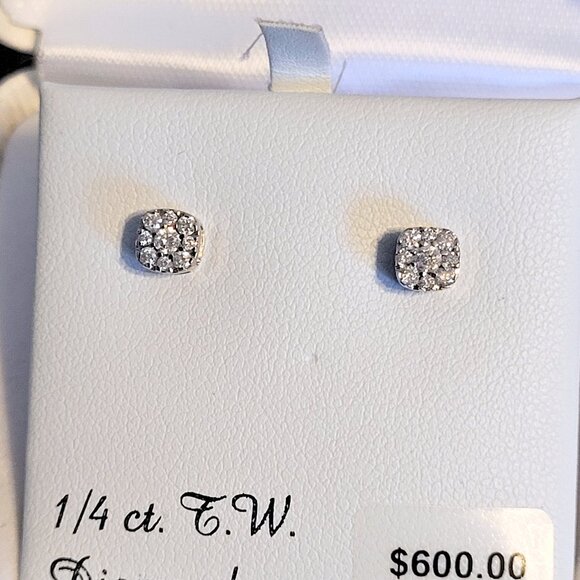 10K White Gold 1/4ct TW Diamond Cluster Square Stud Earrings