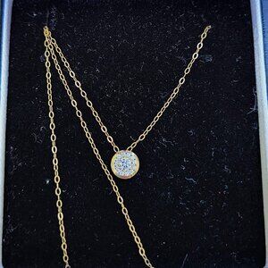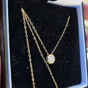 10K Yellow Gold CZ Necklace Round Halo w/ 14K Gold-Filled, 18" Chain MSRP$250
